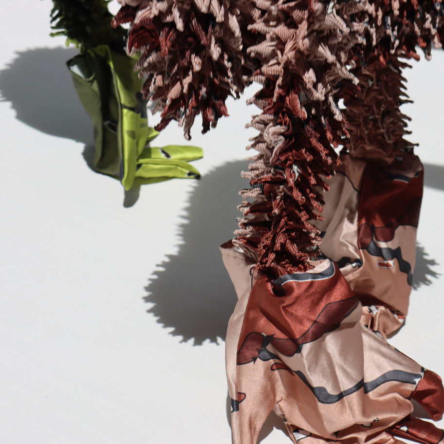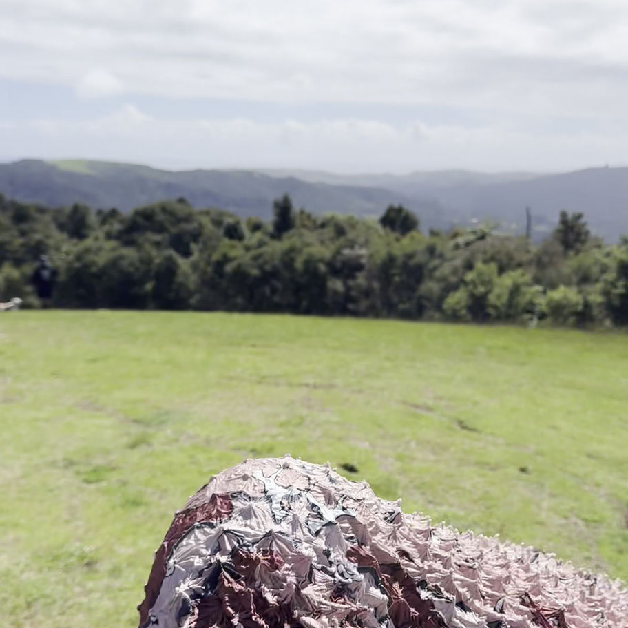The colours used are swatched from the Ngahere of the Waitakere Rangers in Aotearoa, New Zealand. The piece features an all-Shibori tie look, creating an eye-catching and stimulating textured feel. The garment can stretch to fit any size. Made as a couture garment, it can also be used for warmth in the forest, blending you into your environment.